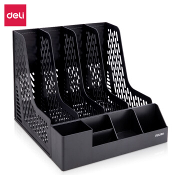得力(deli)4联带笔筒收纳桌面文件框书立办公室桌面多层资料架子