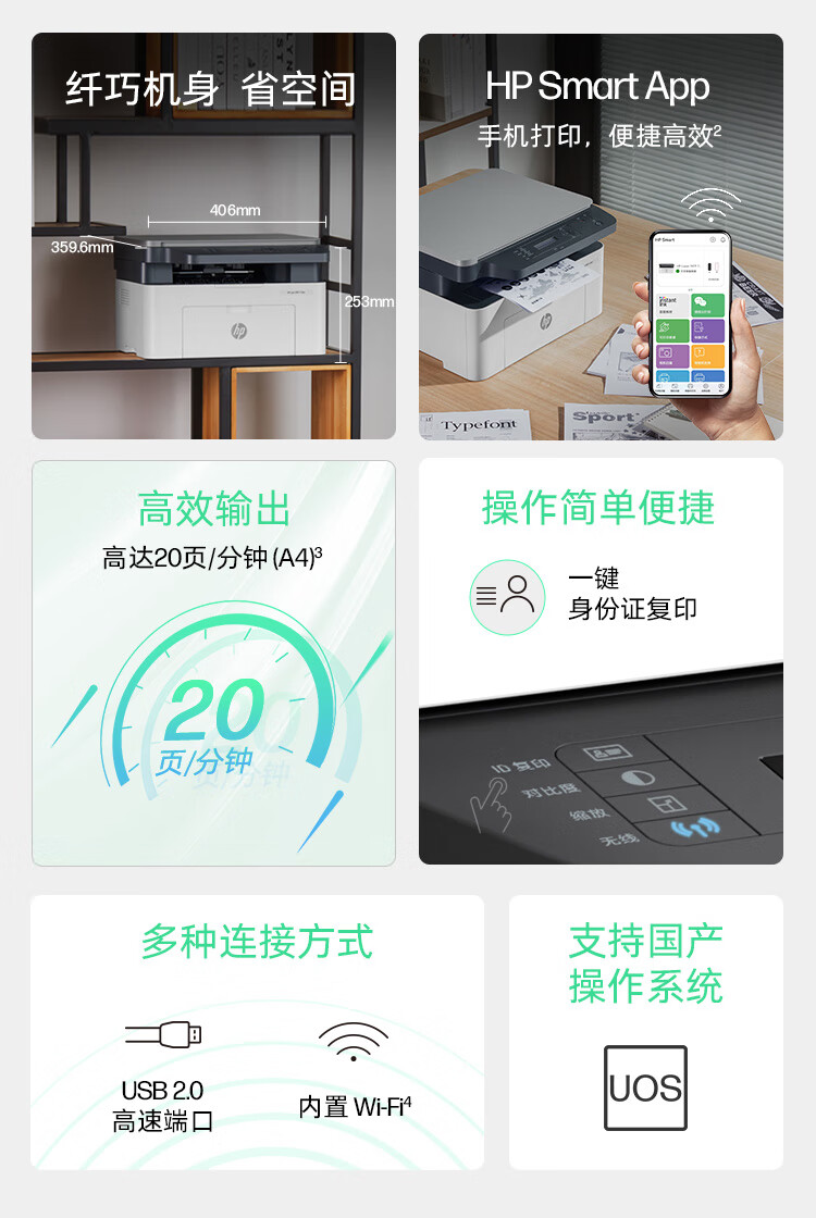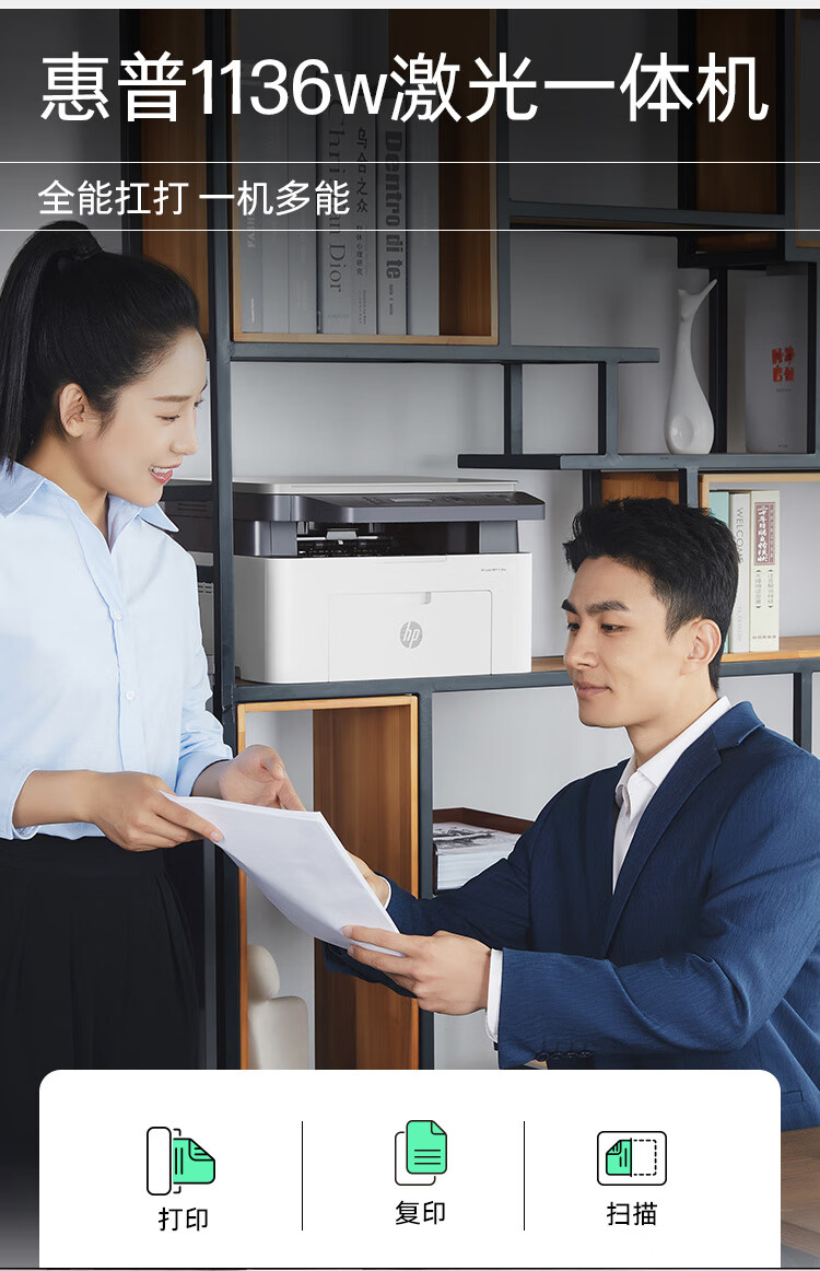 惠普(HP)1136w黑白激光打印机多功能家用办公打印机复印扫描无线商用办公(136w升级版)