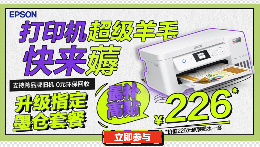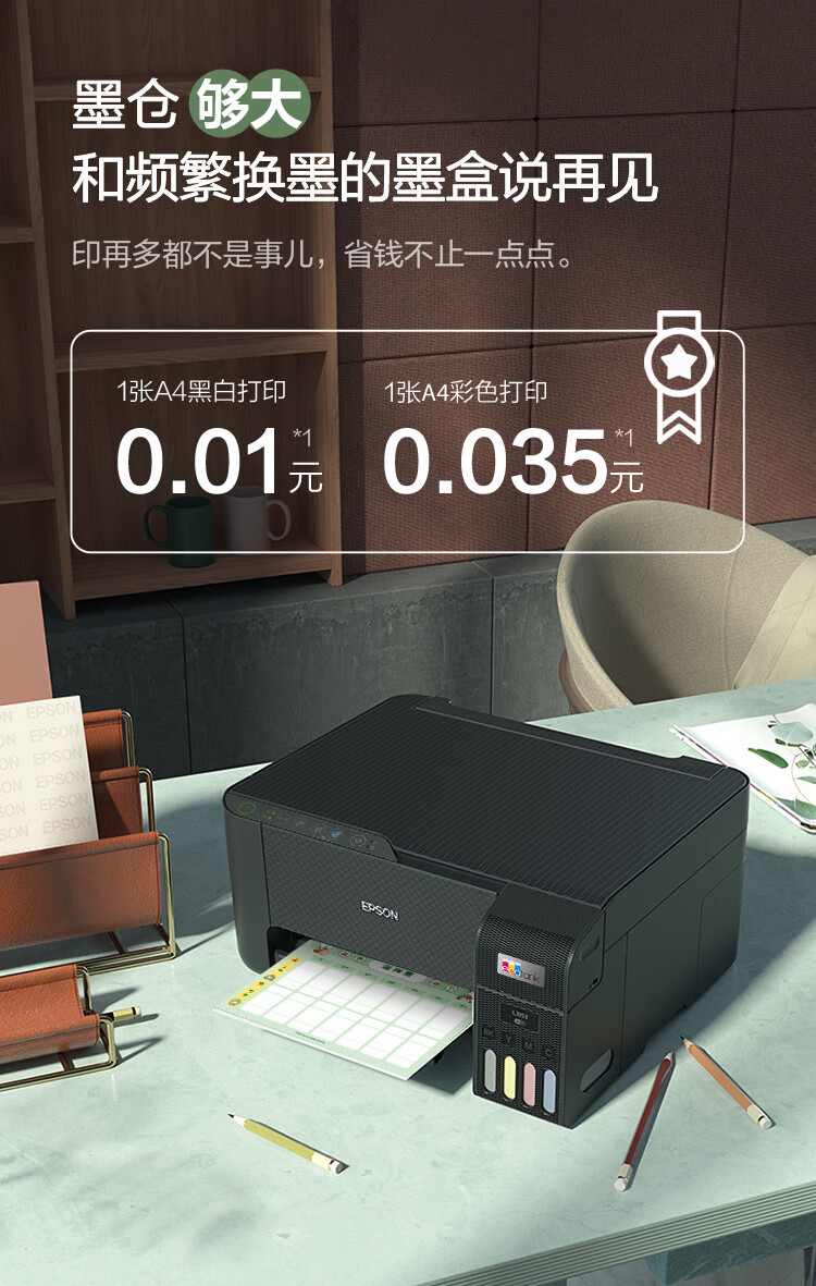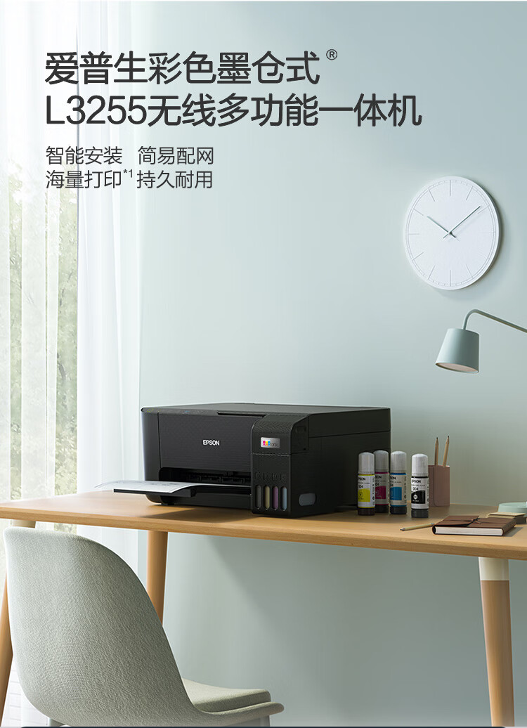 爱普生(EPSON)墨仓式L3255彩色打印机微信打印/无线连接家庭教育好帮手(打印、复印、扫描)