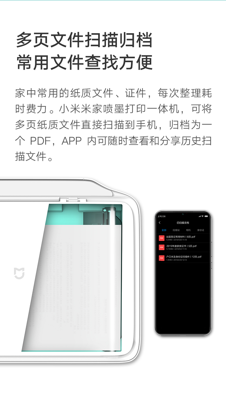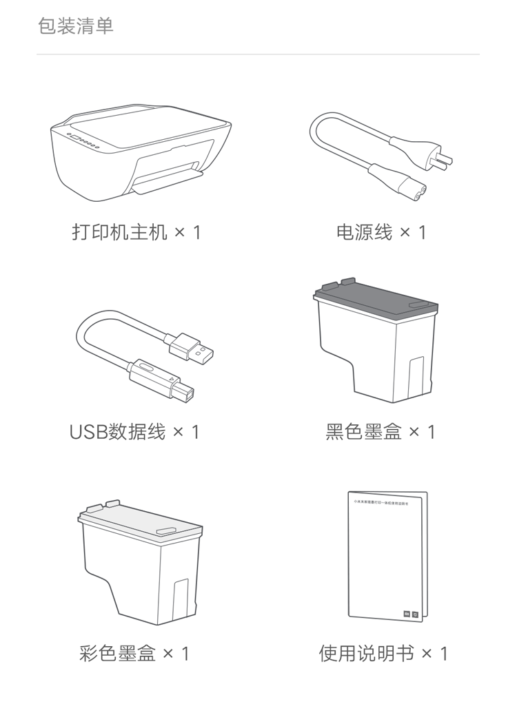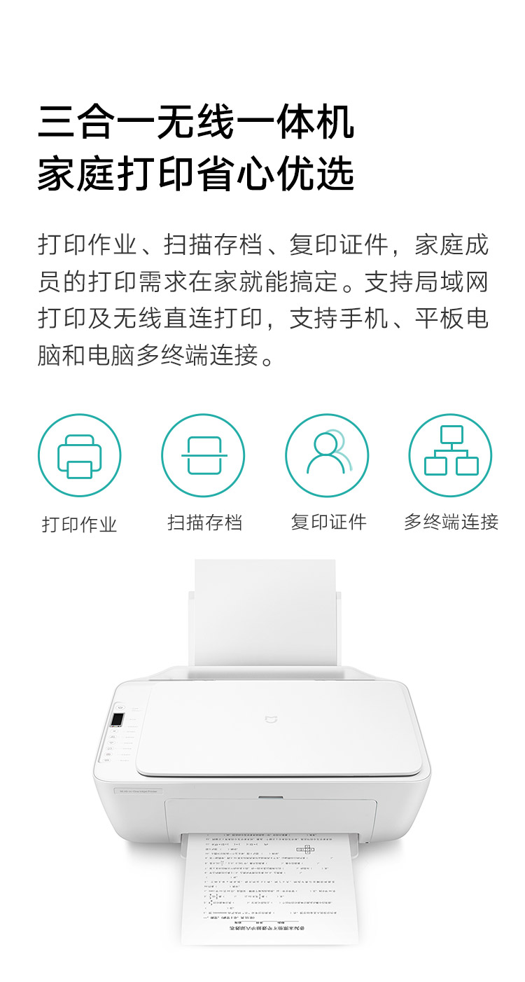 小米(MI)米家喷墨打印一体机打印/复印/扫描/照片彩色打印多合一家用打印学生打印手机APP无线打印
