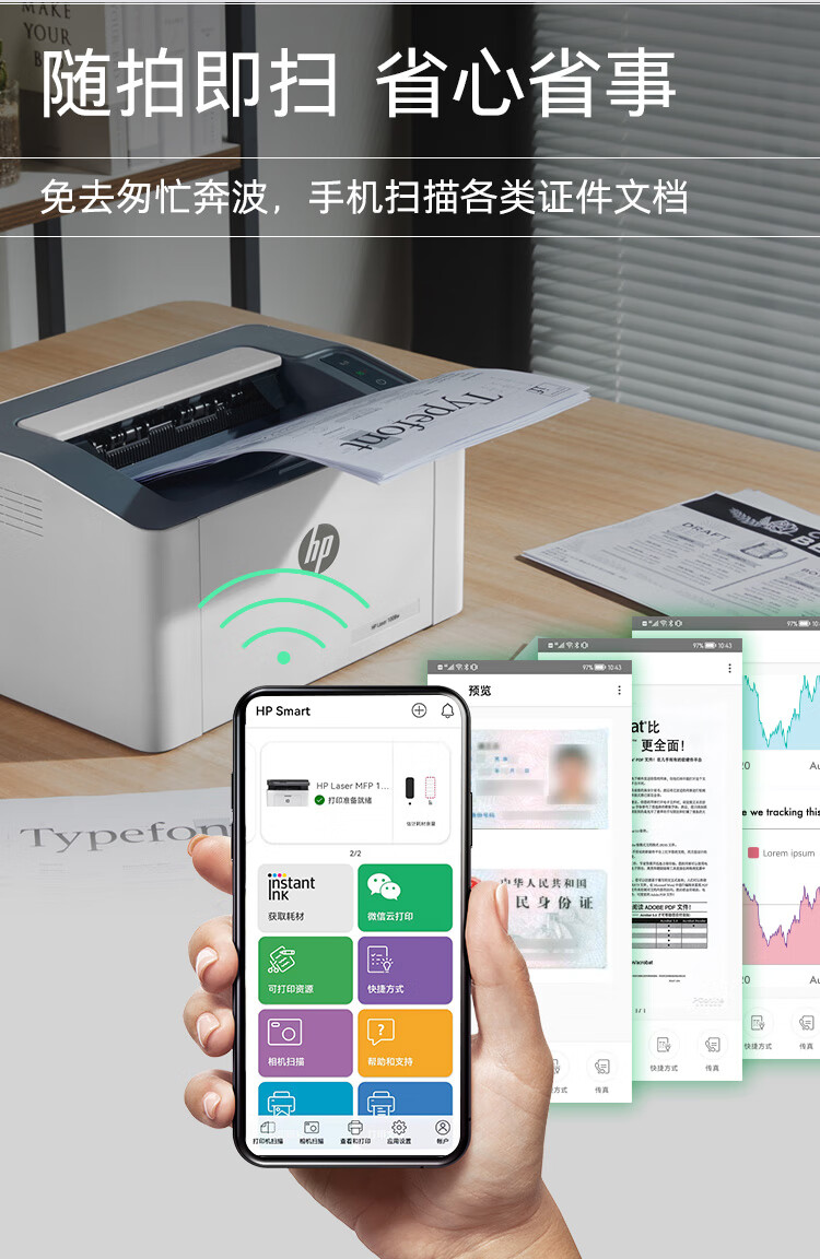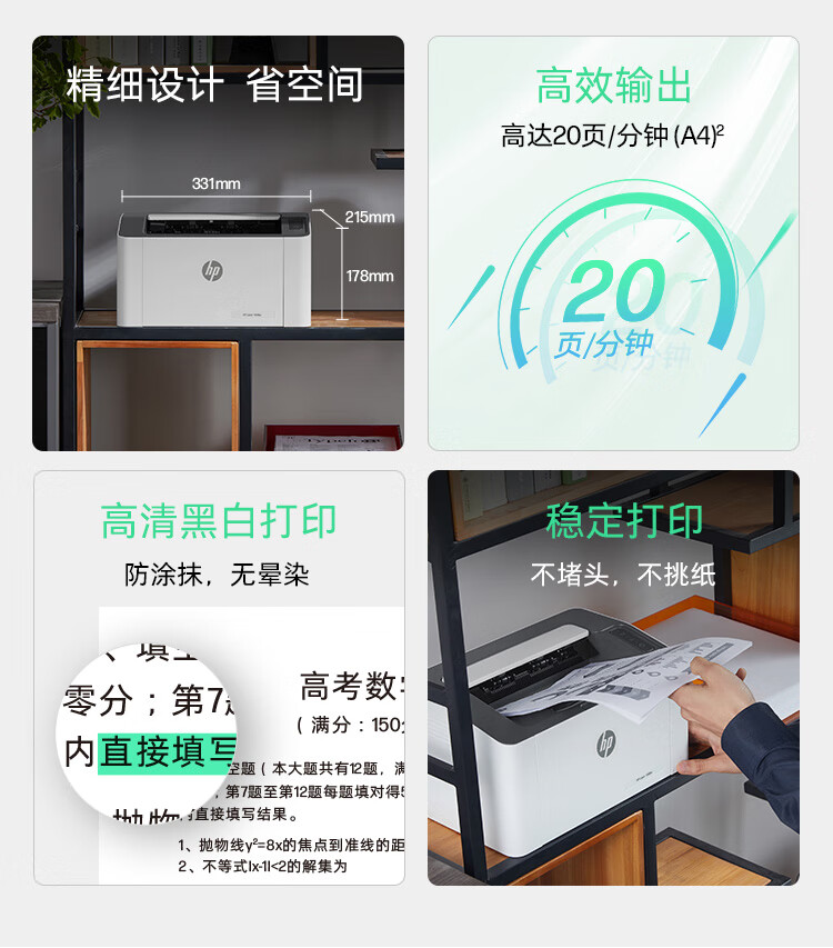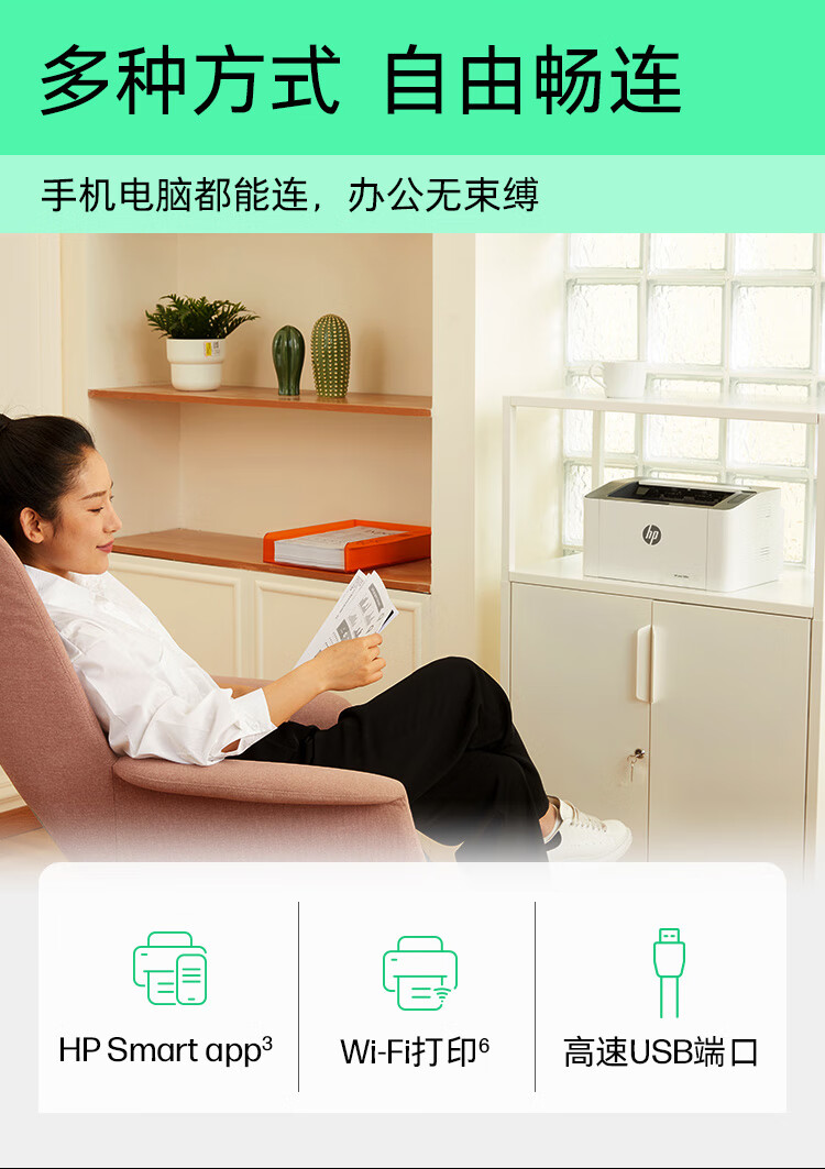 惠普(HP)1003w无线激光打印机打印机学生家用家庭打印作业打印小巧简约(103w升级款)