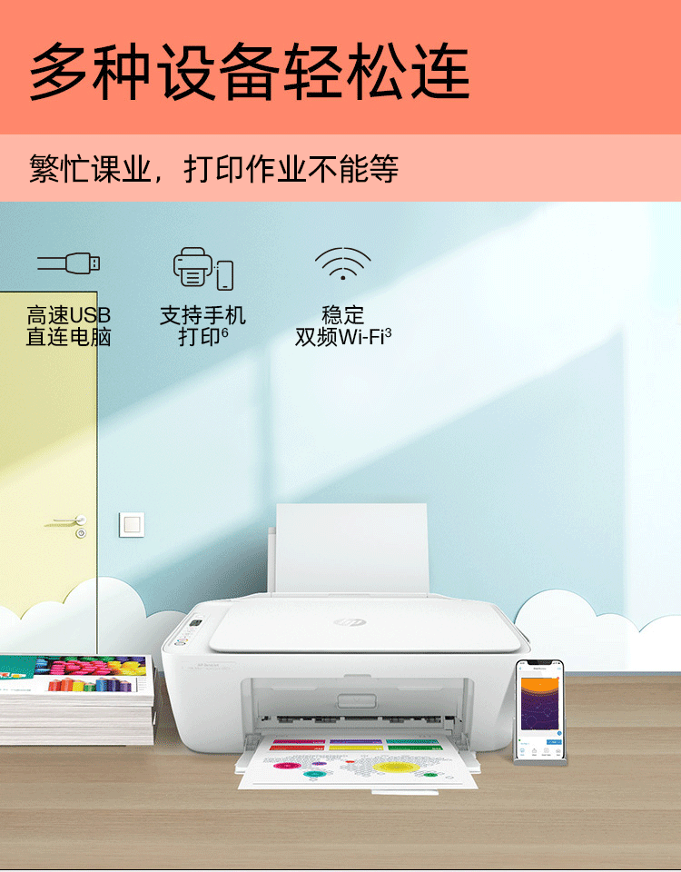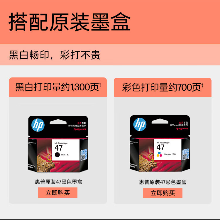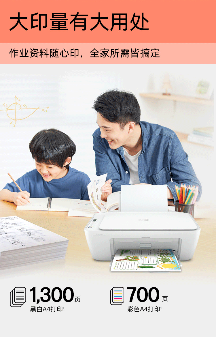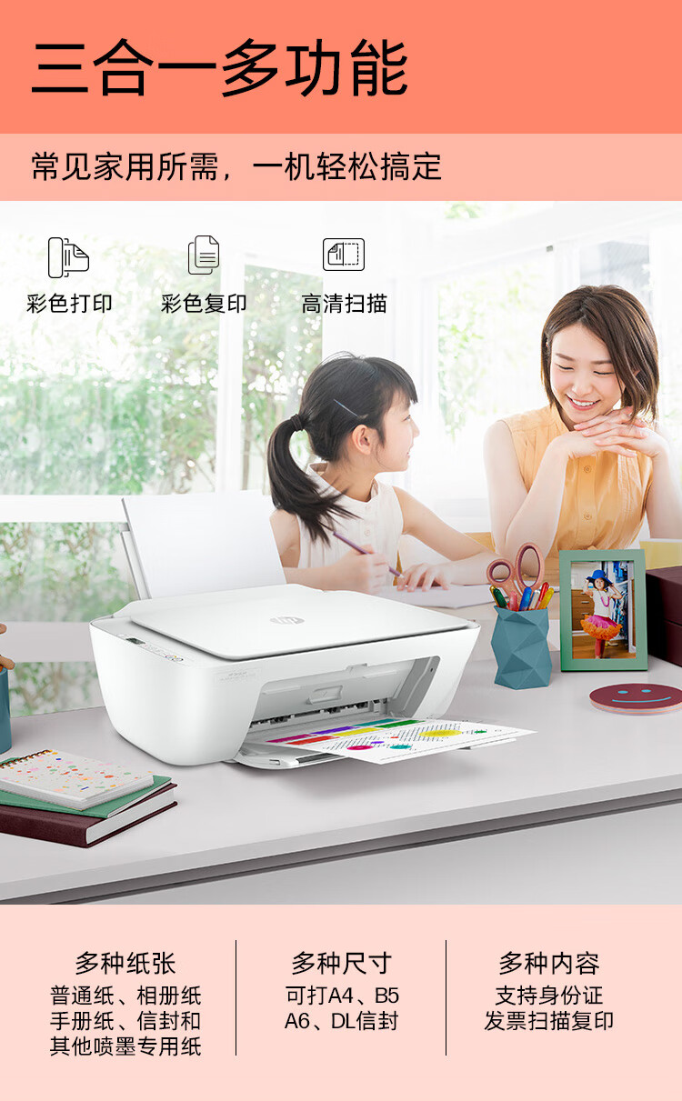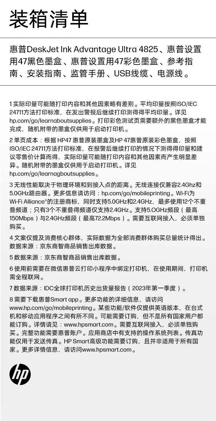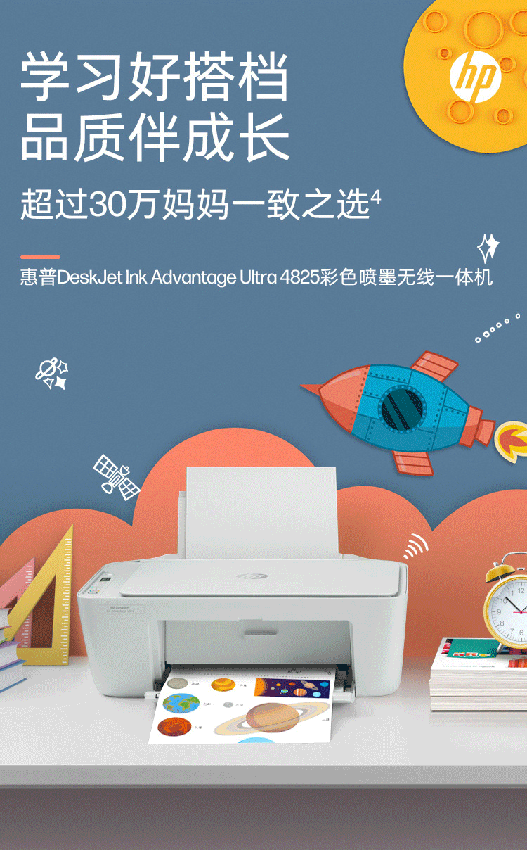 惠普(HP)DJ4825彩色无线喷墨打印机家用大印量低成本照片打印机学生家用微信打印(打印复印扫描)