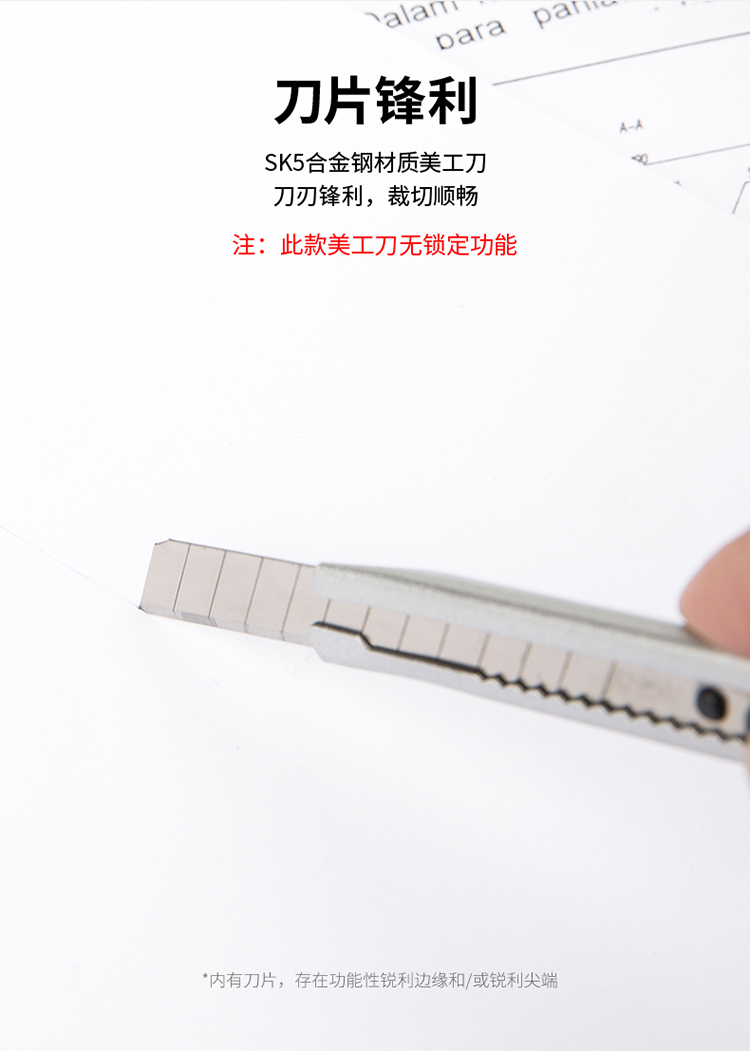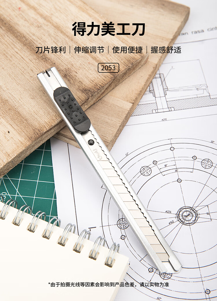 得力(deli)小号薄款金属外壳办公家用美工刀/裁纸刀办公用品2053