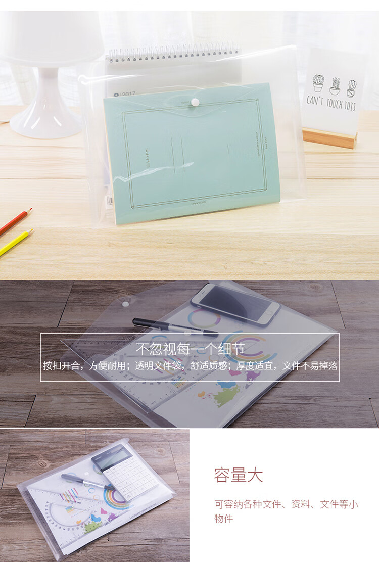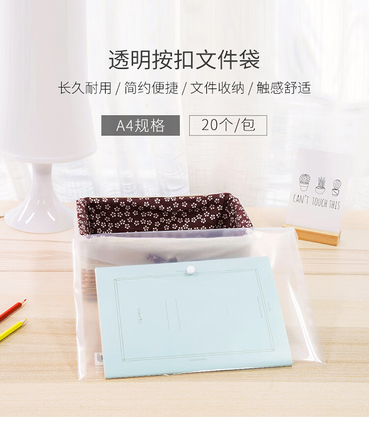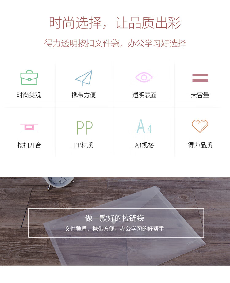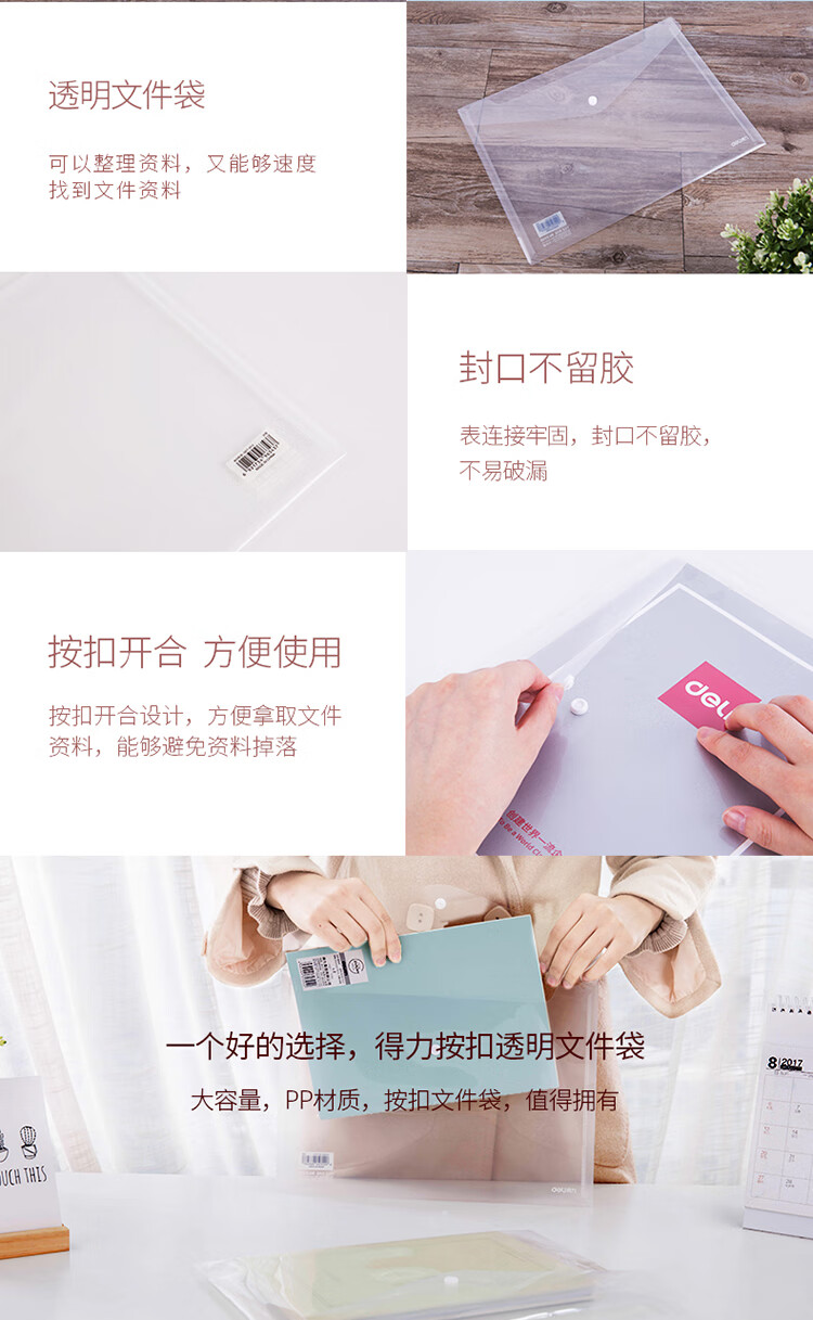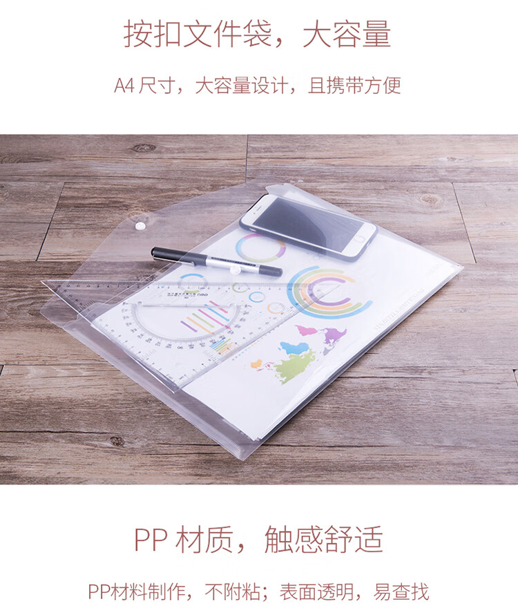 文具得力(deli)20只A4按扣学生桌面透明文件袋试卷收纳文件套学科分类塑料防水档案袋27008