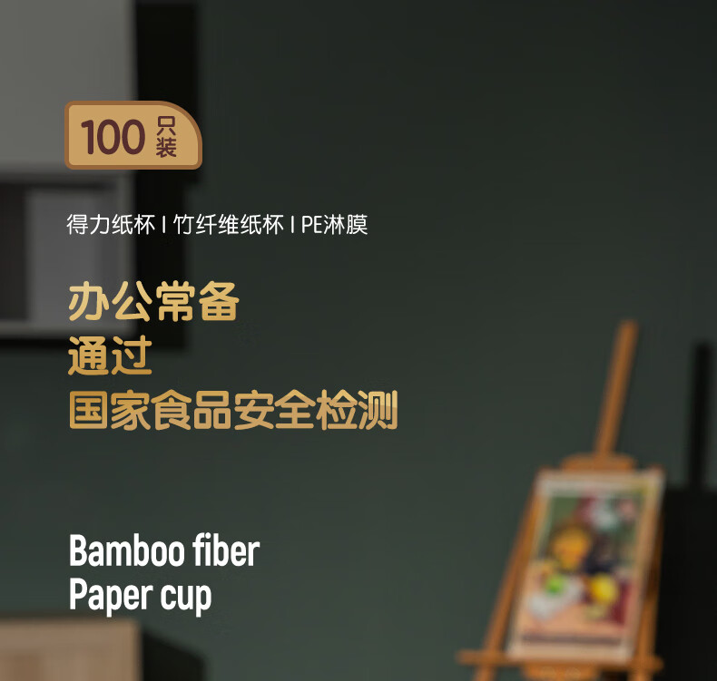 得力(deli)250ml竹纤维一次性杯子水杯/纸杯100只装19208