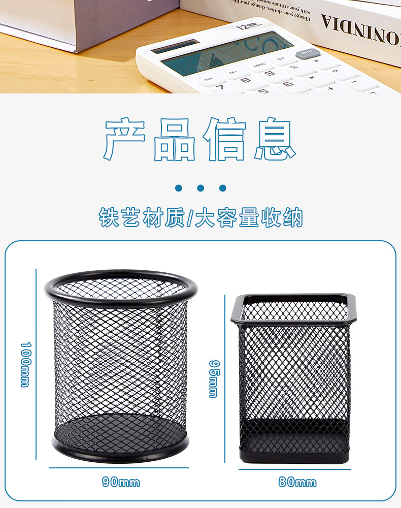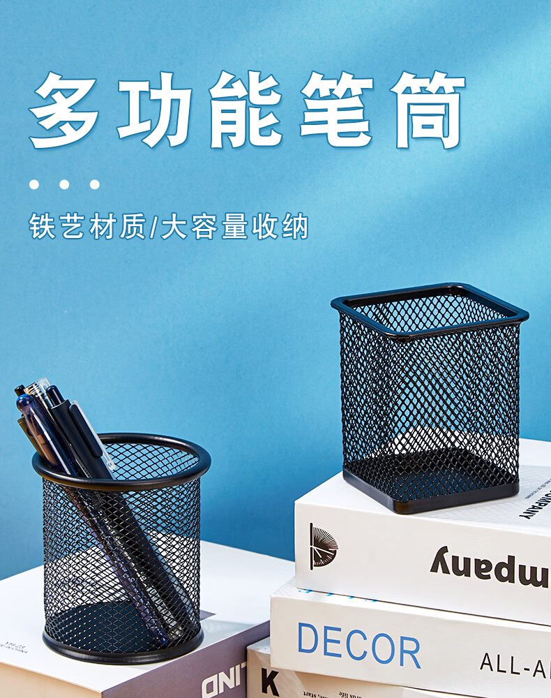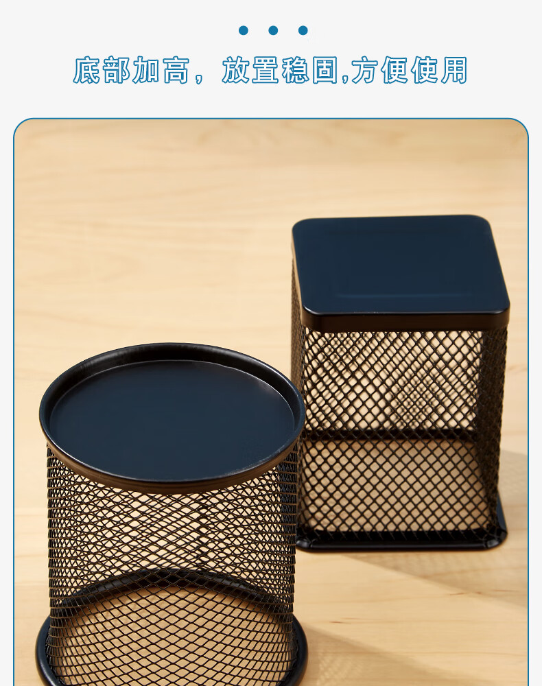 三年二班金属网格圆形笔筒简约桌面收纳盒摆件办公用品圆形黑色