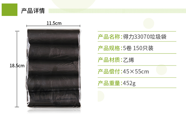 得力(deli)5卷(150只)办公生活垃圾袋45*55cm垃圾分类办公用品黑色33070