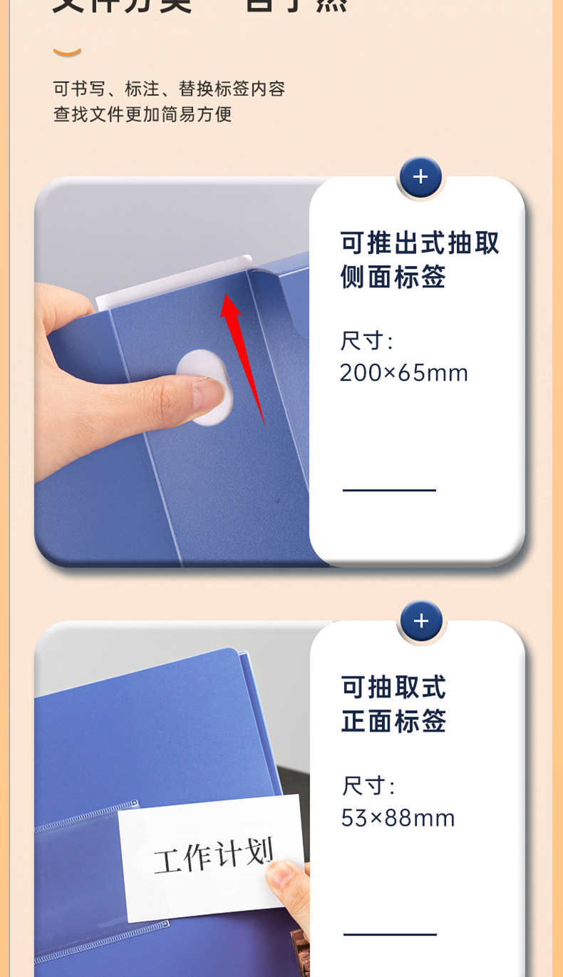 得力(deli)10只55mmA4粘扣档案盒塑料文件盒文件收纳资料盒办公用品升级背条孔槽27036蓝色