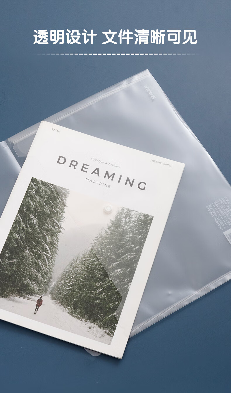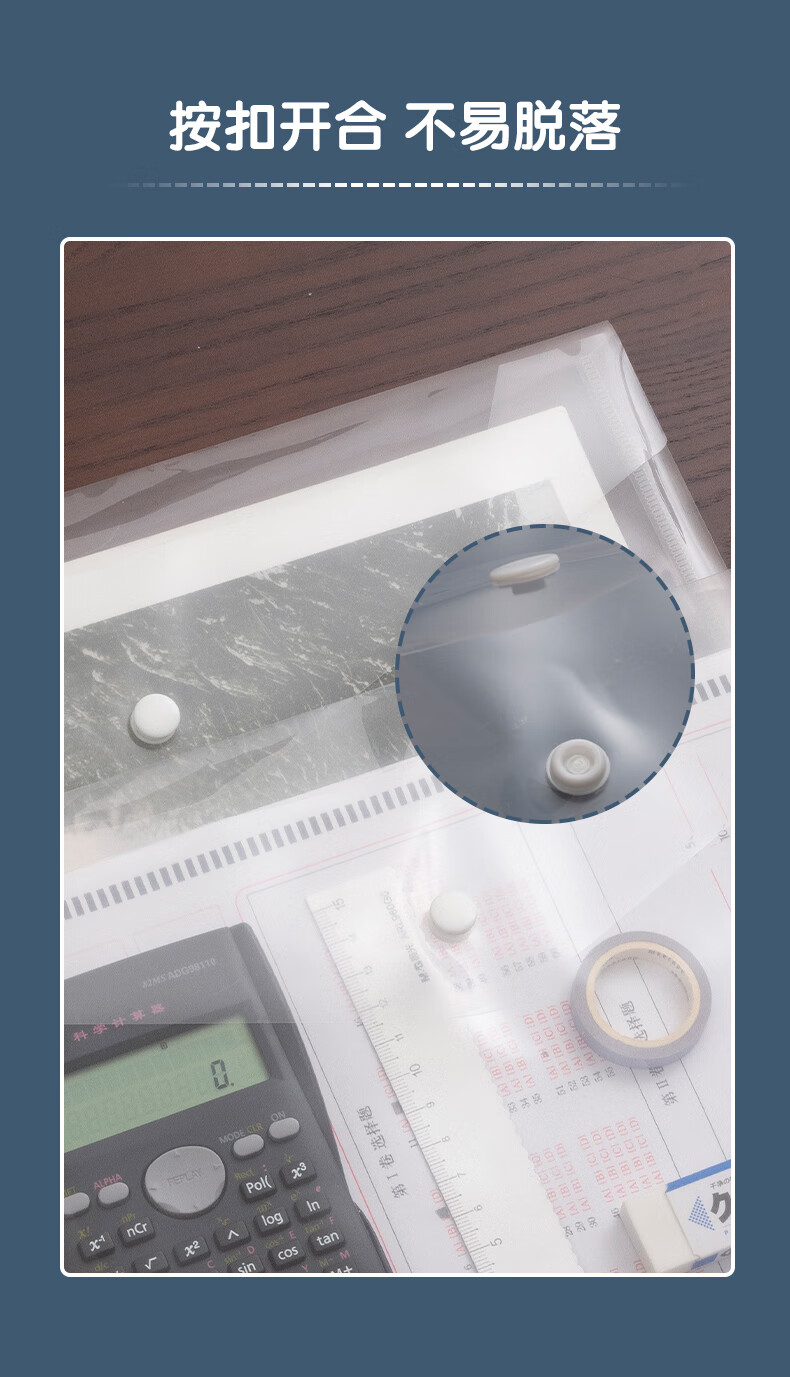晨光(M&G)20只A4按扣学生桌面透明文件袋试卷收纳资料袋开学学科分类办公用品塑料防水档案袋ADM929YR