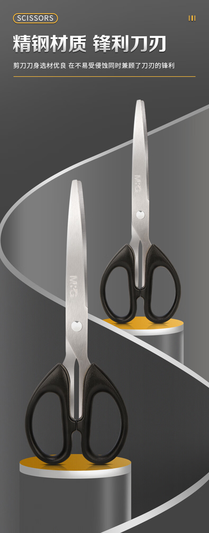 晨光文具180mm办公家用生活剪刀中号手工剪纸刀办公用品黑色单把装ASSN2249