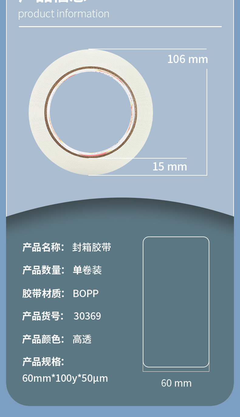 得力(deli)高品质高透明封箱胶带/打包胶带60mm*100y*50um(91.4m/卷)单卷装办公用品30369