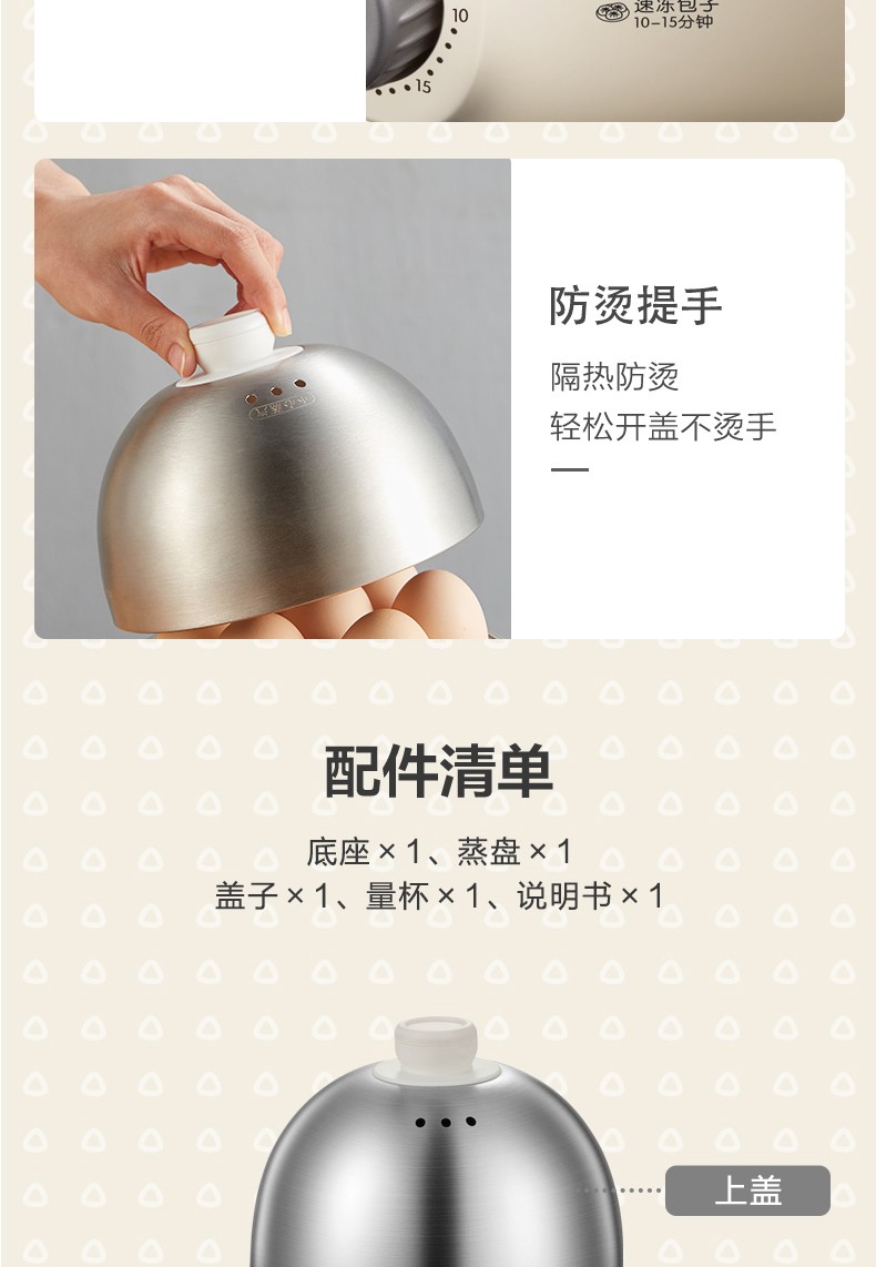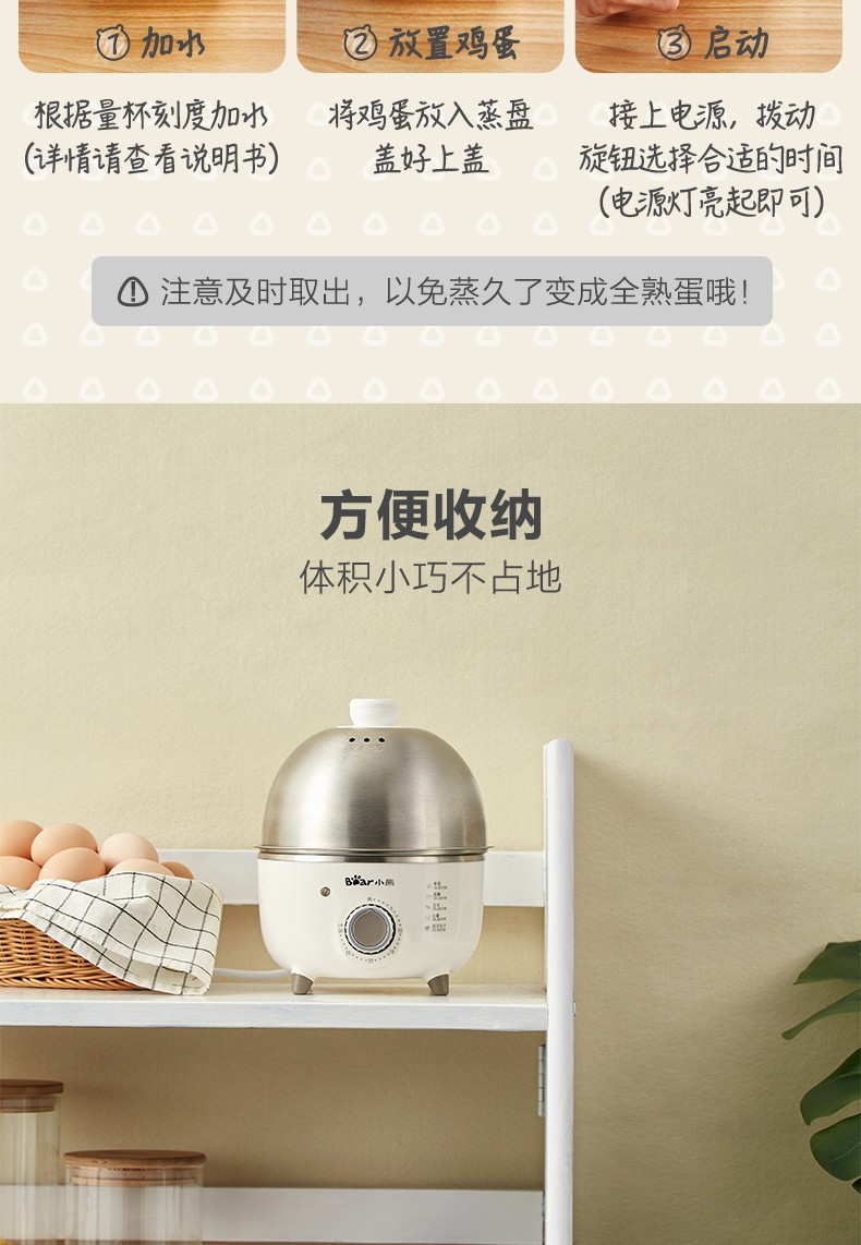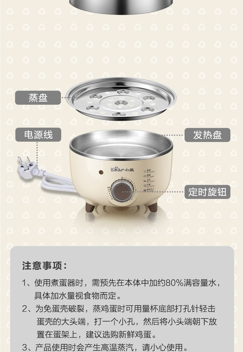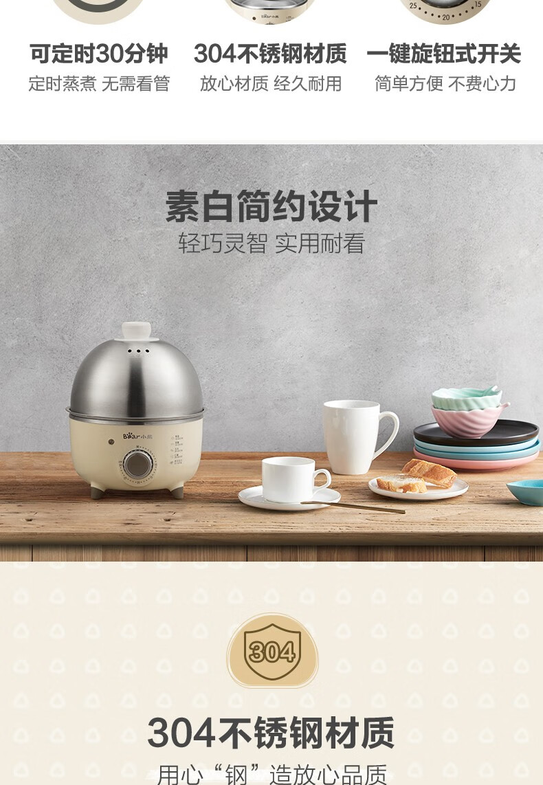 小熊(Bear)煮蛋器小型家用电蒸锅可定时不锈钢蒸蛋器自动断电蒸锅鸡蛋羹迷你鸡蛋器【旋钮定时+304不锈钢】ZDQ-B07C3